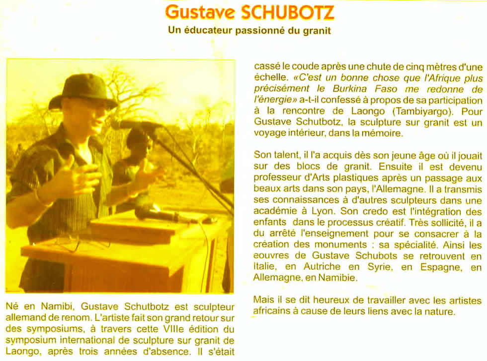 Ne en Namibie, Gustav Schubotz est sculpteur allemand de renom.